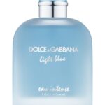 فاتح الأزرق الأزرق مكثف è una fragranza del gruppo legnoso acquatico. Questa fragranza ci invade un’ondata di acqua mediterranea, piena di forza e dotata di un tocco di sensualità e virilità, che descrive un uomo attraente e sexy; pieno di mascolinità e audacia. L’uomo Light Blue Intense ha un fascino accattivante, con un solo sguardo scioglie i nostri sensi e diventa assolutamente e piacevolmente irresistibile. La sua piramide olfattiva è totalmente dominata dagli aromi mediterranei, puri e intensi, che conferiscono a questa fragranza un tono intenso e sensuale. Le note di testa sono mandarino e pompelmo; le note di cuore sono acqua di mare e ginepro. le note di base sono Amberwood e muschio animale.