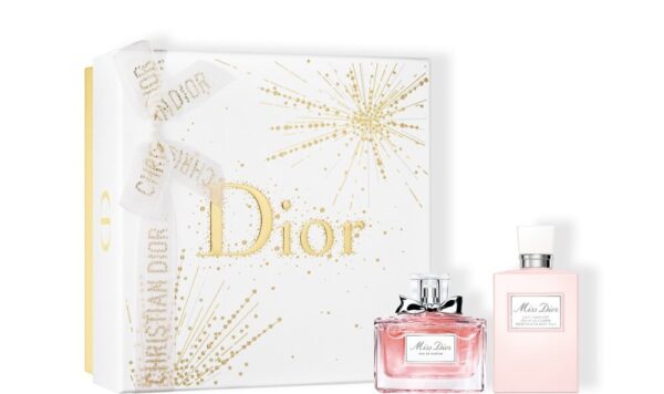 Cofanetto Dior Miss Eau de Parfum 50 ml + 75 ml Latte Corpo Riconfortante ti Aggiunge un tocco di magia alle feste di fine anno con questo cofanetto; Es ist ein perfektes Geschenk für einen geliebten Menschen. E’ ein Duft aus der Chypre Floral-Gruppe, setzt Weiblichkeit und Sinnlichkeit frei. Für eine junge Frau, die ewige Liebe sucht, eine lebhafte und zarte, aber intensive Liebe. Dieser Duft erzählt die romantische Geschichte einer jungen Frau, frei und mutig, eine junge Frau von heute, schön und stolz, eine idyllische Liebe jagen. Es öffnet sich mit dem kantigen Charme eines Freskos, fruchtig und dann weiter zu einem blühenden Herzen mit Noten von absolut ägyptischem Jasmin und Rose. Schließlich endet es mit Noten von Patschuli und Moschus, die dem Duft einen Hauch von Eleganz und Sinnlichkeit verleihen.